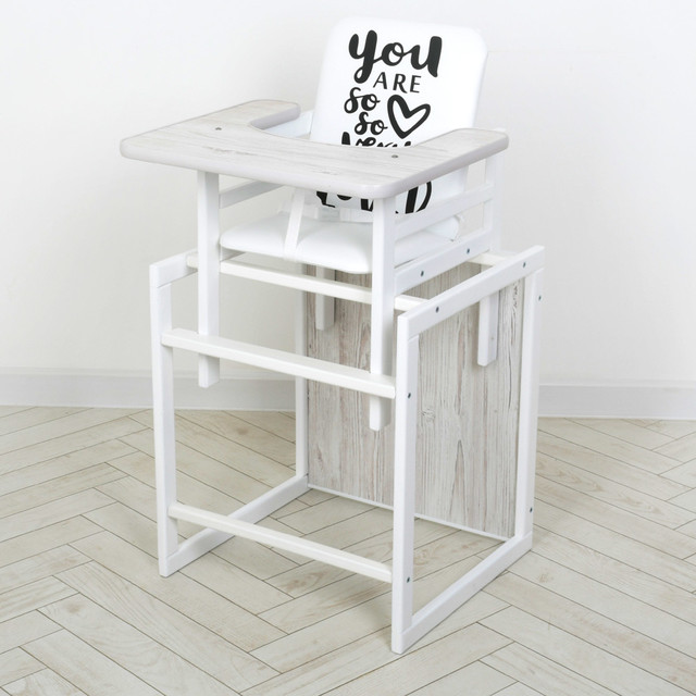 Дитячий дерев'яний стілець трансформер 2 в 1 для годування зі столиком Bambi Nature аляска Білий