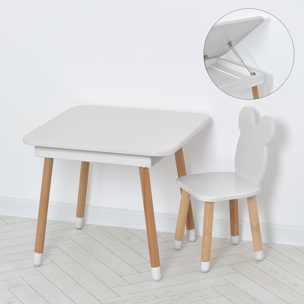 Дитячий дерев'яний столик із прихованим ящиком зі стільчиком Міккі Bambi 08-025G-BOX Сірий