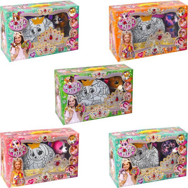 Набір для креативної творчості "ROYAL PET'S" 5в1 (російськомовне оформлення) містить: двосторонню сумку в стилі антистрес, комплект з 12 акрилових фарб, пензлик, акриловий лак на водній основі, м'яка іграшка, браслет 2шт, корона 1шт, комплект різноколірних кристалів, інструкція.