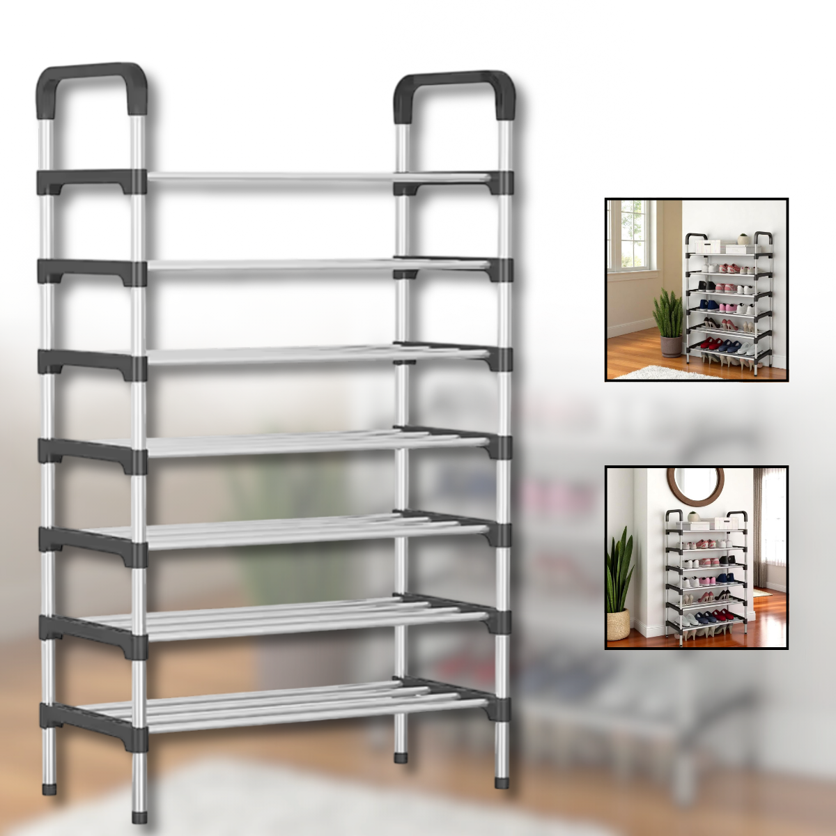 Відкритий дизайн полиці забезпечує хороший доступ до взуття та сприяє його природному провітрюванню, запобігаючи неприємним запахам і зберігаючи взуття в хорошому стані. Полиця виготовлена із міцних матеріалів — металевих трубок та пластикового каркасу, що гарантує довговічність та стійкість конструкції при щоденному використанні. Компактні розміри полиці роблять оптимальним рішенням для приміщень з обмеженим простором, а універсальний дизайн легко впишеться в будь-який інтер'єр.